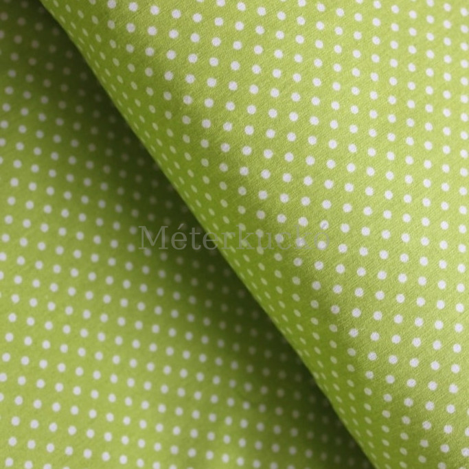 Kiwi zöld alapon fehér (2mm) pöttyös pamutvászon